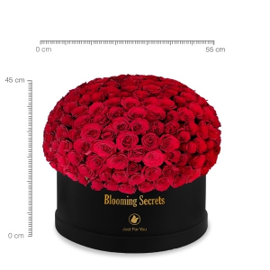 300 razones para decirle cuanto la quieres. Sorprendele con este majestuoso arreglo de 300 rosas en base tipo caja, disponible en color rojo o multicolor.
